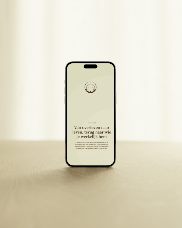 Een verstilde, warme branding waarin gronding en lichtheid elkaar in balans houden. Diepere, aardse tinten bieden houvast en stevigheid; lichtere kleuren, open vormen en ademruimte brengen zachtheid, helderheid en vertrouwen. Het resultaat is een visuele identiteit die De Narcismecoach ondersteunt in haar rol als veilige gids. Voor mensen die klaar zijn om uit de donkerte te bewegen en hun eigen kracht weer toe te laten.